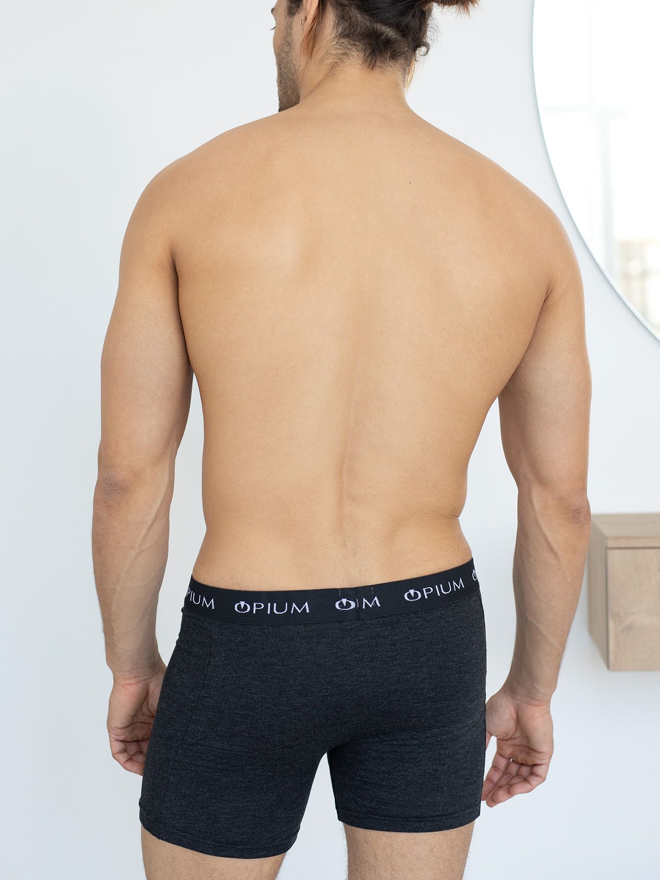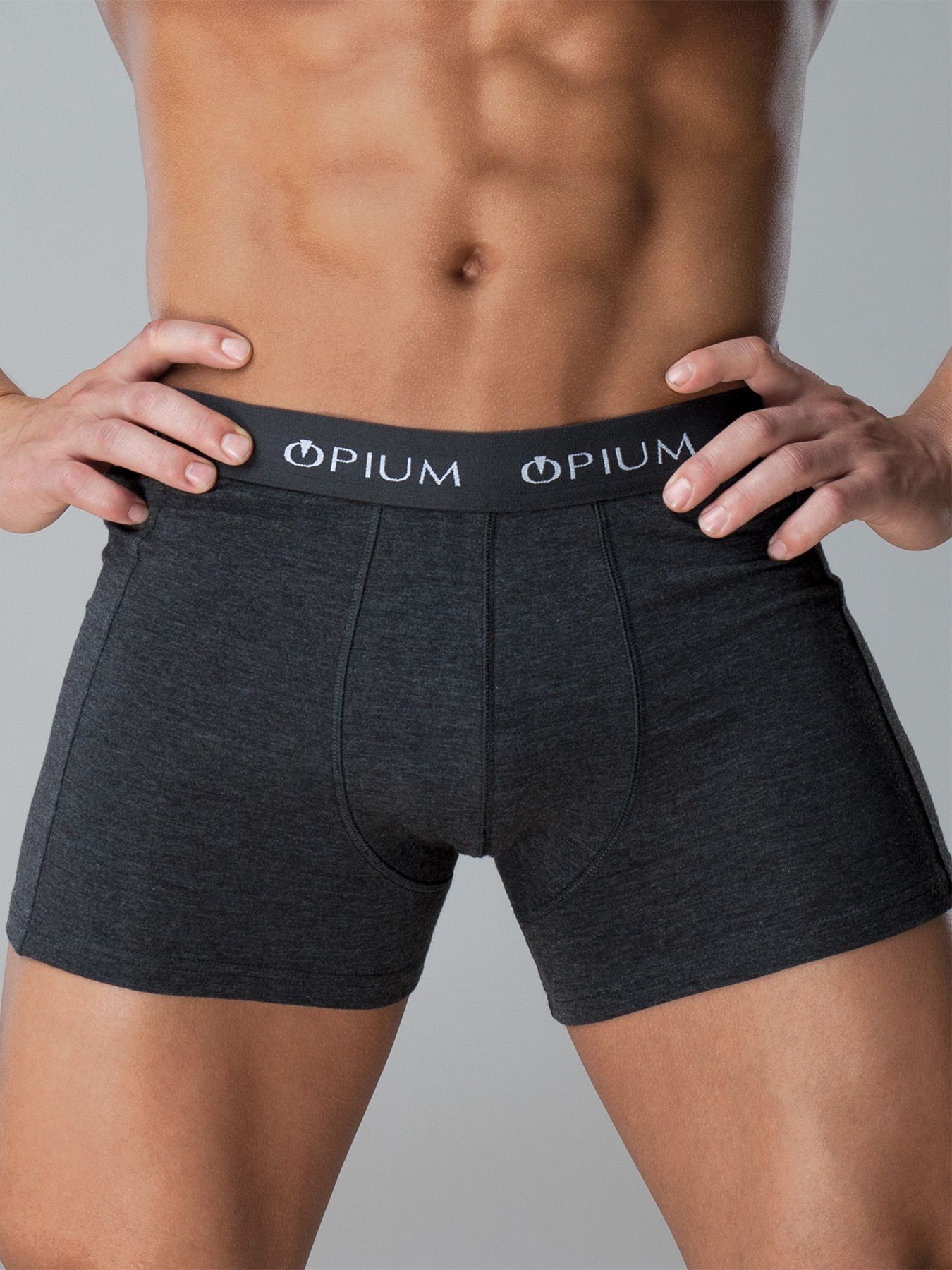Популярная классическая модель удлиненных боксеров из меланжевой ткани. Комфортная резинка с логотипом Opium.