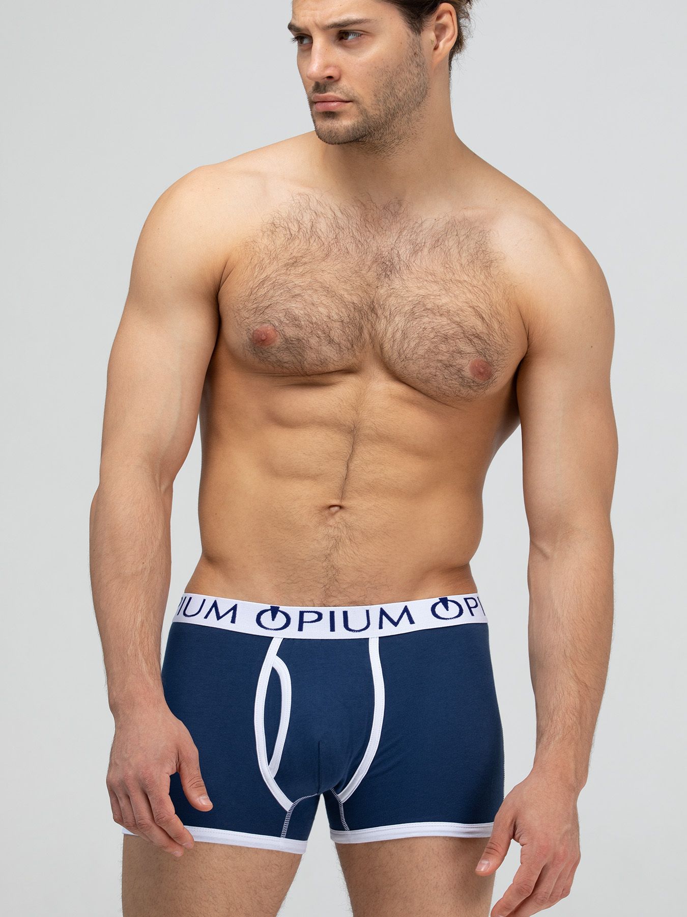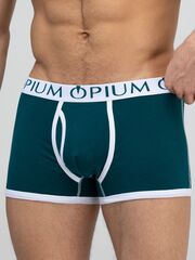 Удобная модель боксеров из хлопка с эластаном, модное сочетание насыщенного цвета с белой отделкой, комфортная резинка с фирменным логотипом OPIUM.