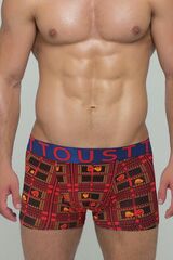 Мужские трусы-боксеры с широким поясом, крупной клеткой и сердечками.