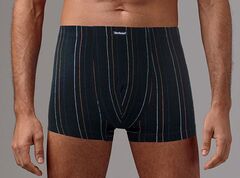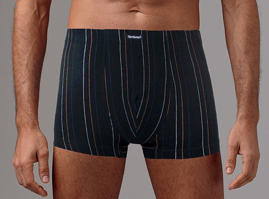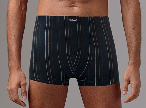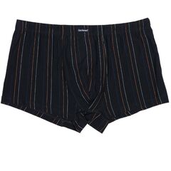 Мужские трусы-боксеры с тонкими разноцветными полосками на темном фоне. Они сделаны из 100% хлопка и очень приятны к телу и отличаются удобным эластичным поясом.