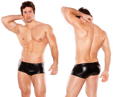 Возбуждающе может выглядеть не только женщина, но и мужчина. Современные джентльмены также стремятся к эффектному обольщению. Мужские трусы, выполненные из блестящего винила с «мокрым» эффектом не менее возбуждающе действуют на женщин. Спереди боксеры на молнии, внутренняя сторона снабжена защитной лентой. Трусы на эластичном поясе.