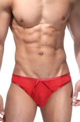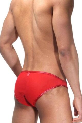 Легкие мужские трусы-слипы из черной эластичной ткани. Трусы окантованы блестящим шнуром.
