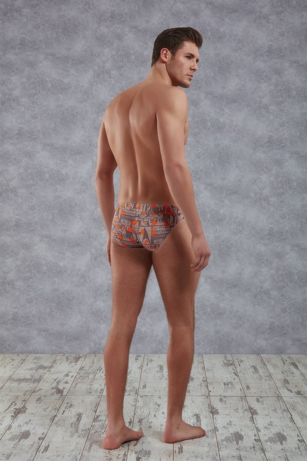 Мужские трусы-слипы с принтом в виде спортивных силуэтов и ярко-оранжевыми кляксами. Мягкий и приятный для тела эластичный натуральный материал. На поясе тоненькая резинка, вшитая внутрь материала. Передняя панель однослойная, без подкладки.