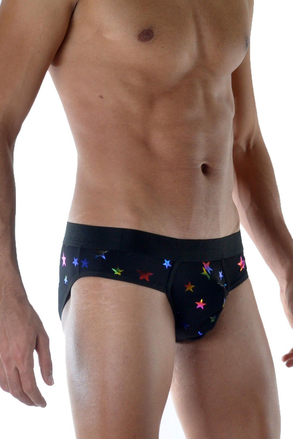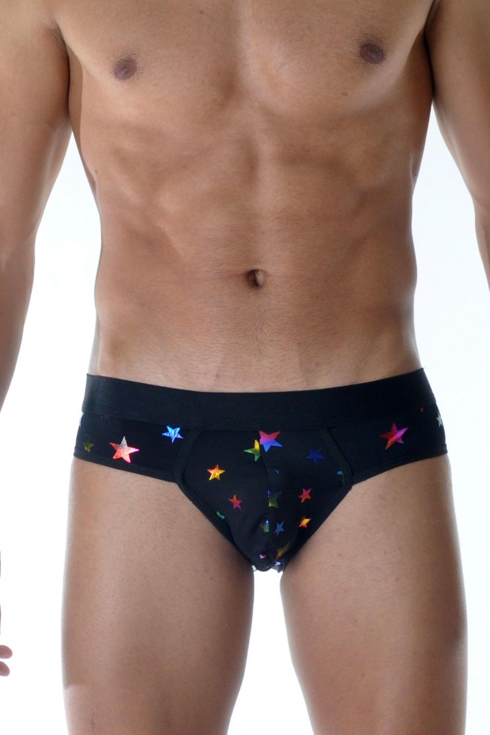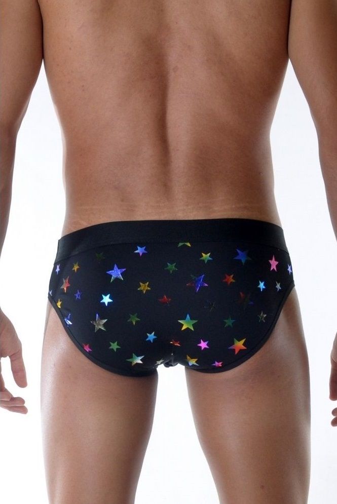 Мужские трусы-слипы с разноцветными блестящими звездами.