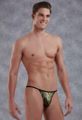 Мужские стринги-ниточки от Doreanse золотисто-зелёного цвета с имитацией кожи рептилий.