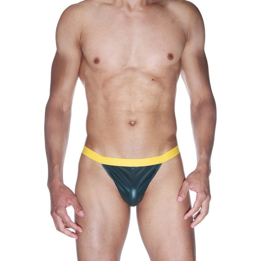 Мужские трусы-тонги с контрастным желтым пояском