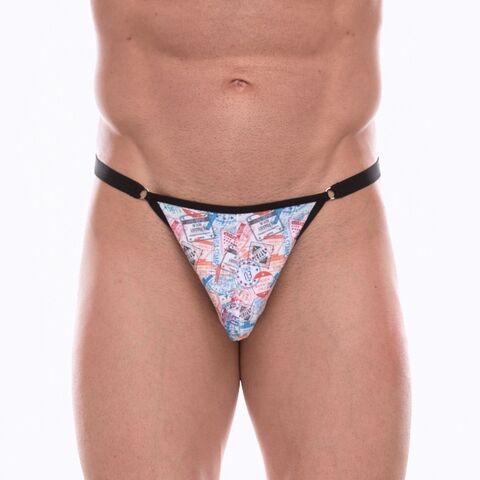 Мужские трусы-тонги с принтом в виде почтовых штемпелей.