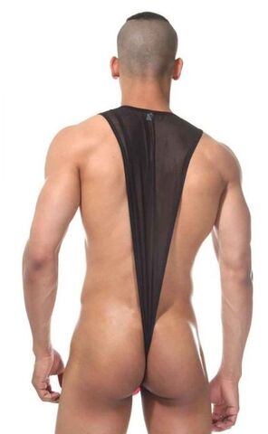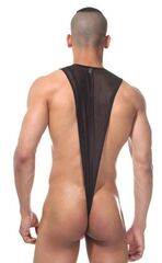 Оригинальное боди для мужчин, в котором скомбинирована верхняя полупрозрачная с контрастным гульфиком.