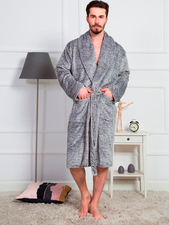 Халат из микрофибры, с отложным воротником на запахе с поясом.