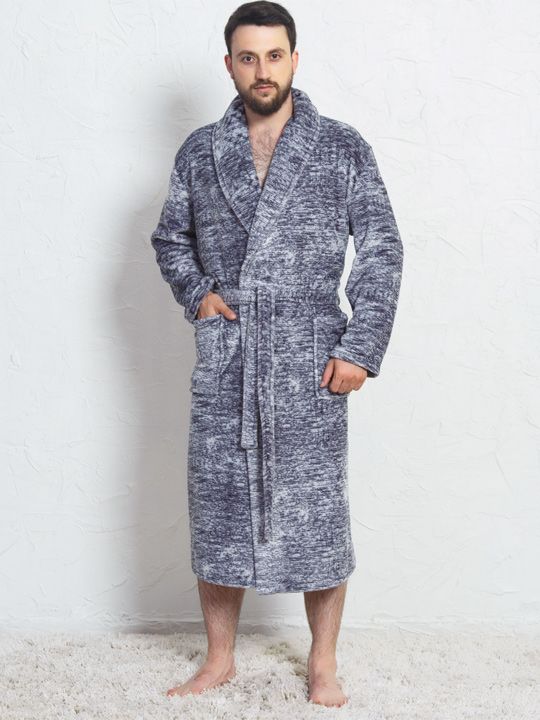 Халат из микрофибры с отложным воротником, на запахе с поясом.