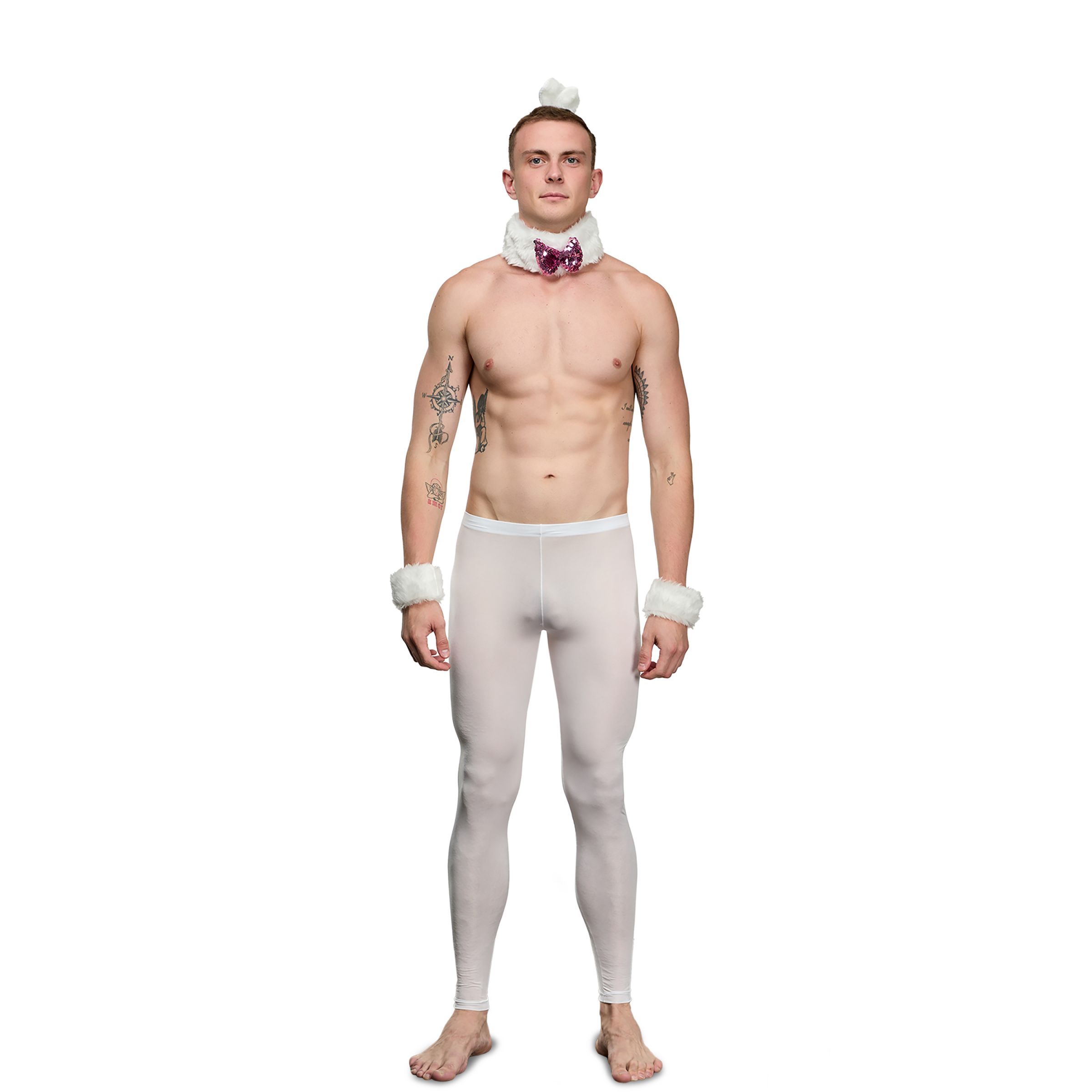 Мужской игровой костюм «Заяц». Состоит из 4 предметов: полупрозрачных легинсов, нарукавников, ушек и ошейника. В комплекте: легинсы, нарукавники, ошейник, ушки.