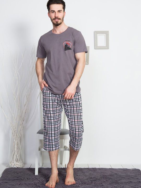 Мужской домашний комплект: футболка с коротким рукавом и капри. В комплекте: футболка, капри.