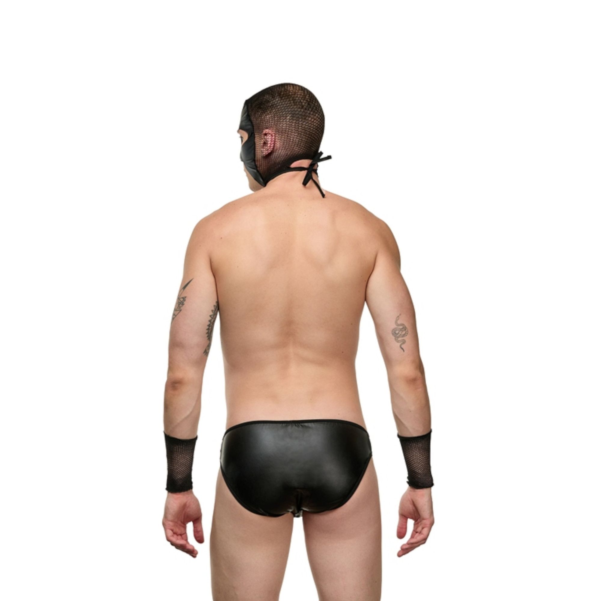Мужской костюм «Боец». Состоит из 3 предметов: трусов, маски-шлема с прорезями для глаз и рта, нарукавников из сетки. В комплекте: трусы, нарукавники, маска-шлем.