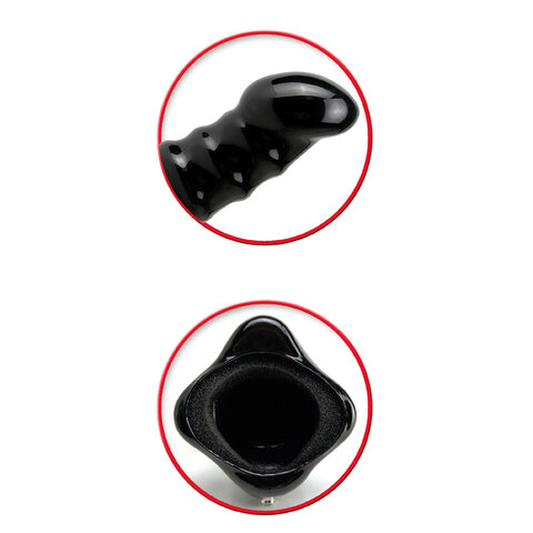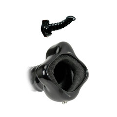 Черный фаллопротез, изготовленный из ПВХ. Имеет мошонку, ярковыраженную головку и спиралевидную форму. Гладкий, не имеет швов. Страпон крепится к телу с помощью эластичных ремешков (ширина - 2,5 см).
