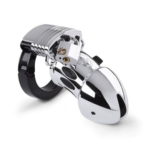 Серебристое издание мужского пояса верности от Mystim с электропроводящей поверхностью. Держит и копит желание под замком, пока Госпожа или Господин не решат его выпустить.