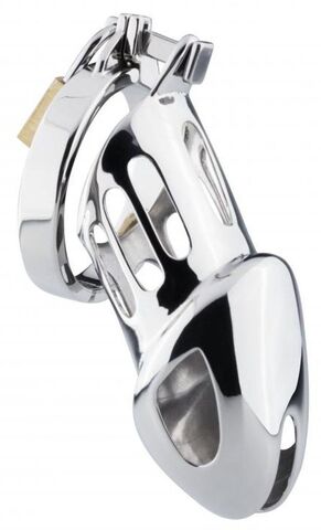 Мужской пояс верности изготовлен из нержавеющей стали. Имеет кольцо, которое застегивается за мошонкой. В комплект входи замочек. Пояс плотно прилегает к мошонке, что не позволит снять пояс без открытия замочка. Специальная изогнутая форма не позволит получить эрекцию. Диаметр кольца для мошонки - 5 см.