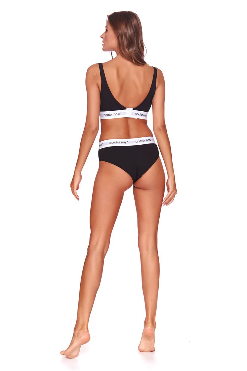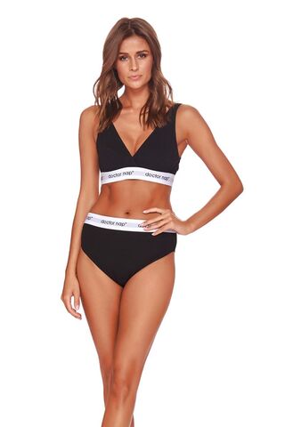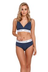 Мягкий и удобный бюстгальтер из хлопка. Нижняя часть на поддерживающей широкой резинке с фирменным логотипом. На спинке застежка на крючки-петли.