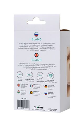 Bland наполняет изнутри, а вибрация доставляет удовольствие каждой клеточке тела. Изогнутая головка обеспечивает дополнительную стимуляцию. Небольшой размер подойдет как новичкам, так и опытным любителям. Съемная вибропуля. Рабочая длина - 8,5 см.