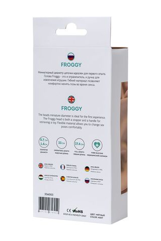Миниатюрный диаметр цепочки идеален для первого опыта. Голова Froggy — это и ограничитель, и ручка для извлечения игрушки. Гибкий материал позволяет комфортно менять позы во время секса. Рабочая длина - 23 см.
