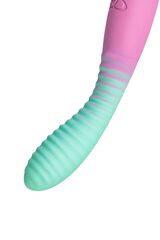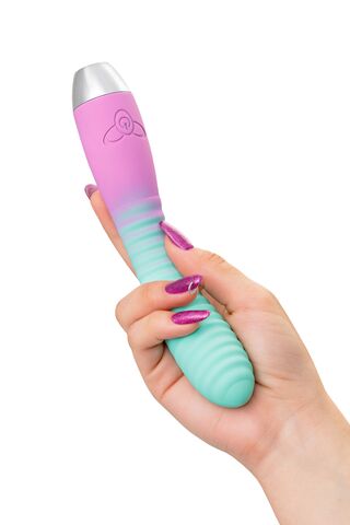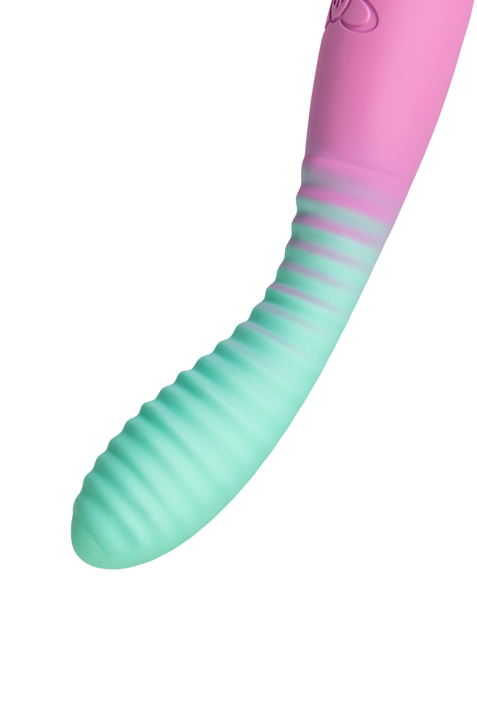 Позвольте представить Azalia от Flovetta — вибратор с плавным градиентом от нежного мятного до теплого розового оттенка, который привнесет в вашу жизнь моменты настоящего наслаждения. Этот милый вибратор классической слегка изогнутой формы сочетает элегантный дизайн и функциональность, даря каждой девушке не только эстетическое удовольствие, но и непревзойденные ощущения. Анатомический изгиб ствола создан для того, чтобы подстраиваться под ваши желания, деликатно стимулируя точку G и создавая максимальный комфорт при использовании. Azalia легко управляется всего одной кнопкой, что позволяет вам без труда выбрать один из 10 режимов вибрации для полного наслаждения. Изготовленный из высококачественного бархатистого силикона, этот вибратор обеспечивает мягкость и нежное прикосновение к коже, а его гибкость помогает максимально адаптироваться к изгибам тела, даря глубокое и приятное воздействие. Для максимального комфорта используйте лубрикант на водной основе. Вибратор заряжается с помощью магнитной зарядки, что делает его использование максимально удобным и освобождает от необходимости искать розетки или разъемы. Рабочая длина - 13,5 см.