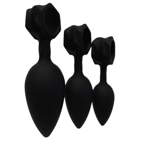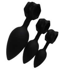 Набор из 3 анальных плагов Bathmate Anal Training Plugs. Эргономичный дизайн для лёгкого введения. Кольцо для удобного извлечения или размещения вибропули Vibe (приобретается отдельно). Материал - гипоаллергенный силикон. Длина большой пробки - 13 см., рабочая длина - 10 см., диаметр - 3,8 см.
