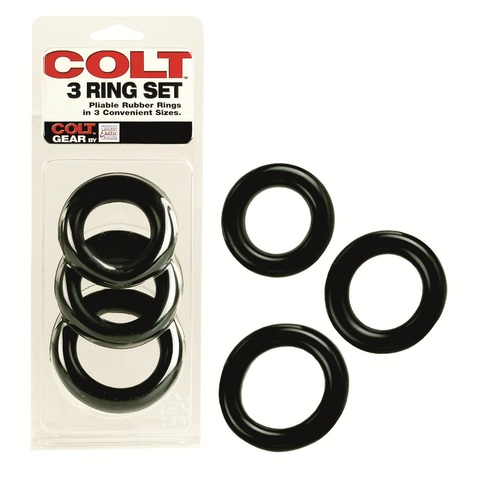 Набор чёрных эрекционных колец Colt. Диаметр колец - 6, 7 и 8 см.