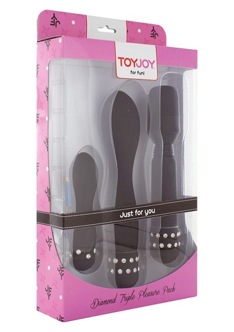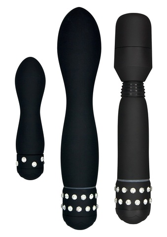 Набор чёрных вибраторов DIAMOND TRIPLE PLEASURE PACK. Длина массажёра - 18 см, диаметр - 3 см.