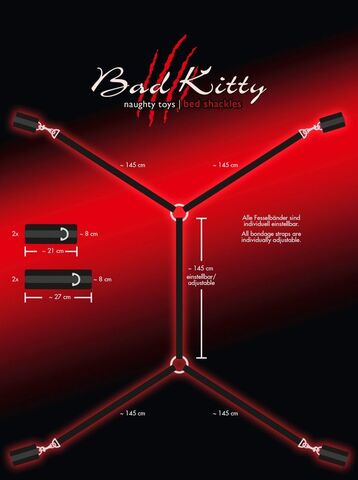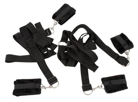 Набор для фиксации на кровати Bed Shackles. Состоит из лямок на кольцах и 4 манжет: 2 для рук, 2 для ног. Манжеты на карабинах.