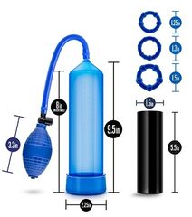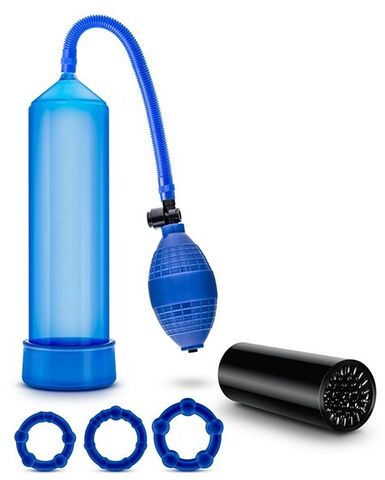Ввакуумный массажер для мужчин. Создает хорошую степень разряжения в колбе за счет удобного ручного механизма выкачивания воздуха. В комплект входят 3 эрекционных кольца разного диаметра для увеличения притока крови в момент вакуумного массажа, а также мастурбатор. Длина помпы - 24 см., рабочая длина - 20 см., диаметр - 5,7 см.