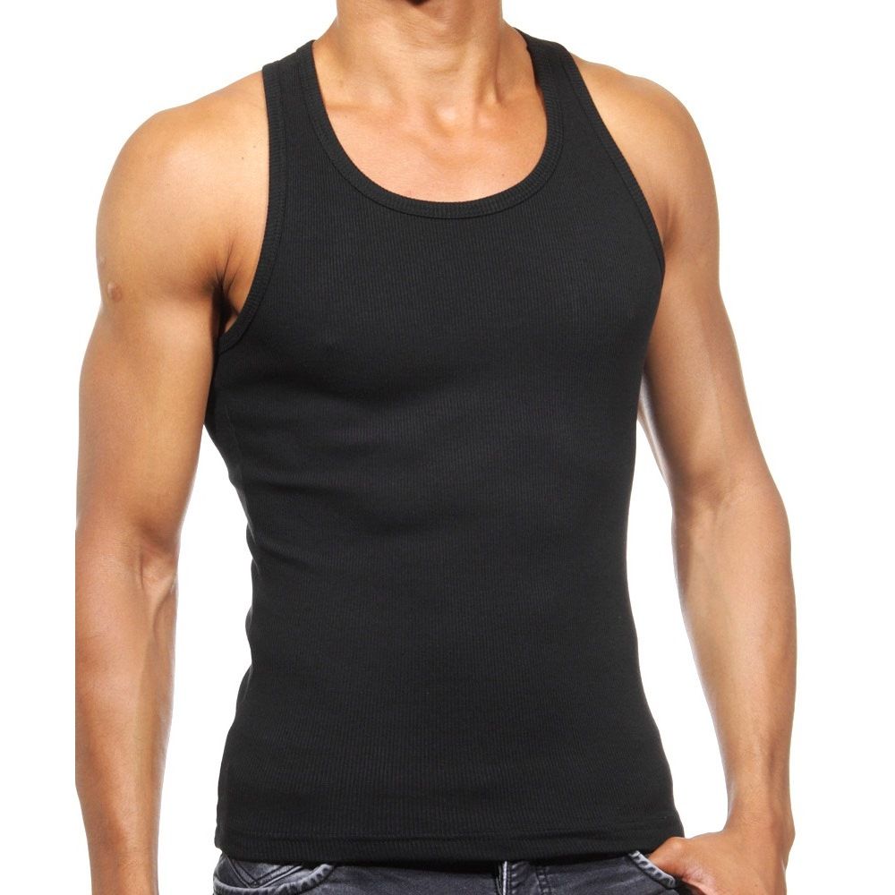 Набор из 2 черных мужских маек из ткани в рубчик.