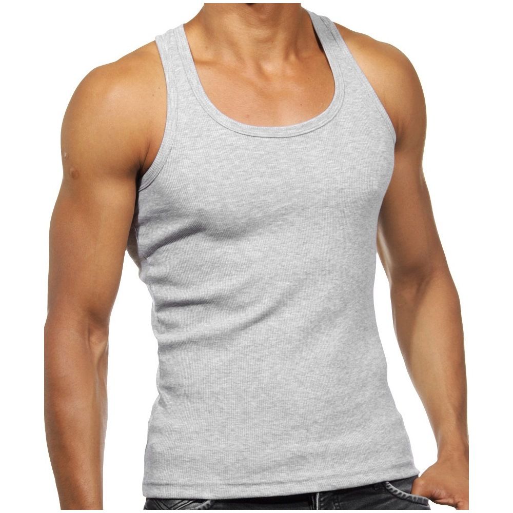 Набор из 2 серых мужских маек из ткани в рубчик.