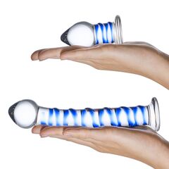 Набор из 2 стеклянных игрушек с синей спиралью Swirly Dildo & Buttplug Set