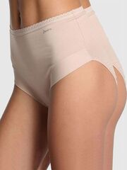 Трусики-слип с завышенной линией талии из высококачественного хлопка. Высота бочка 13 см. Пояс обработан плоской ажурной резинкой 1,5 см. Линия открытия ноги спереди обработаны мягкой окантовкой. Ластовица выполнена из уникального хлопкового материала. Набор из 2 шт. одного цвета.