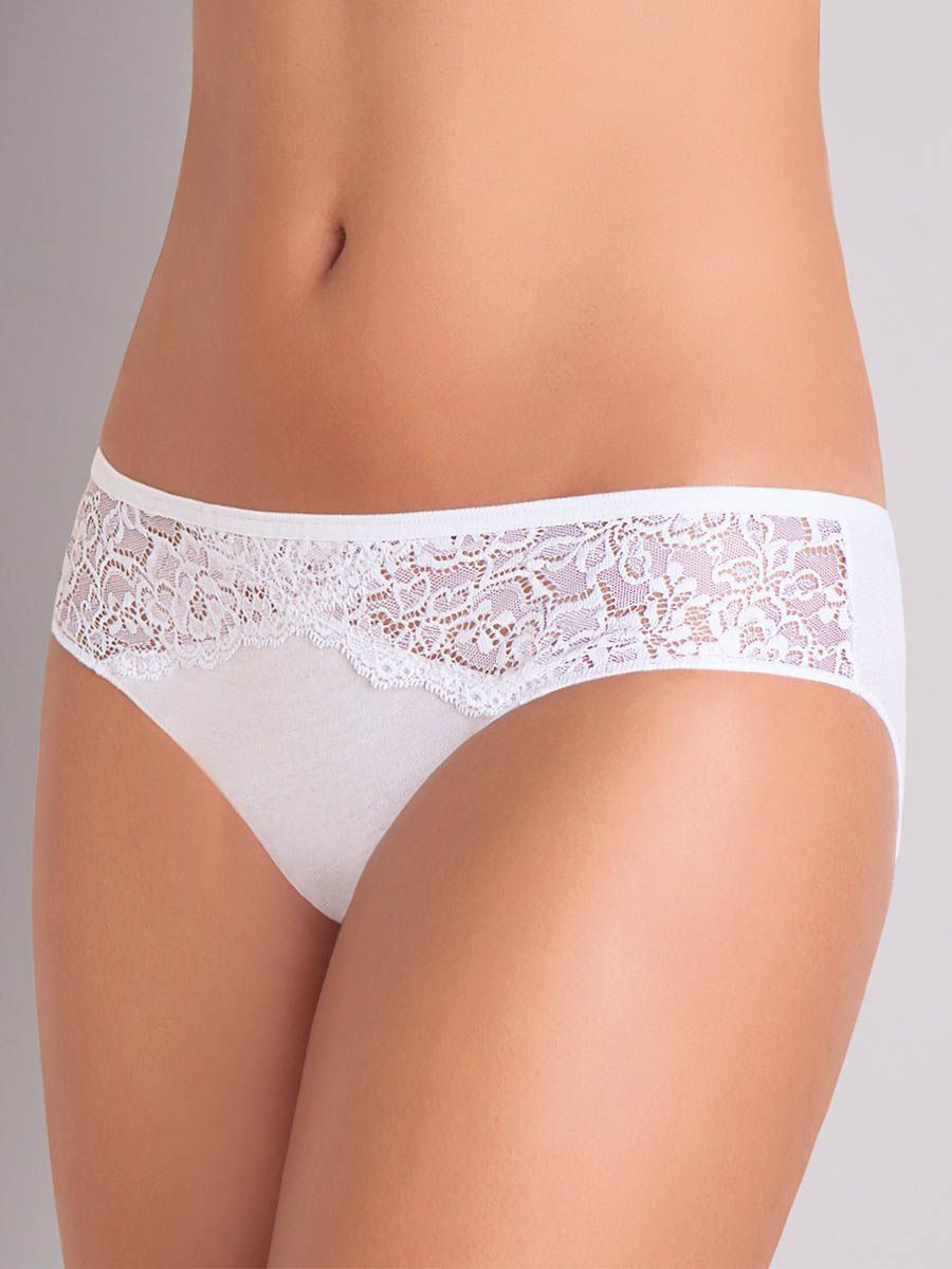 Слипы-мини из эластичного хлопкового полотна, с кружевными вставками на фронтальной панели. Края обработаны оверлоком. Экономичная упаковка из 2-х штук одного цвета.