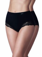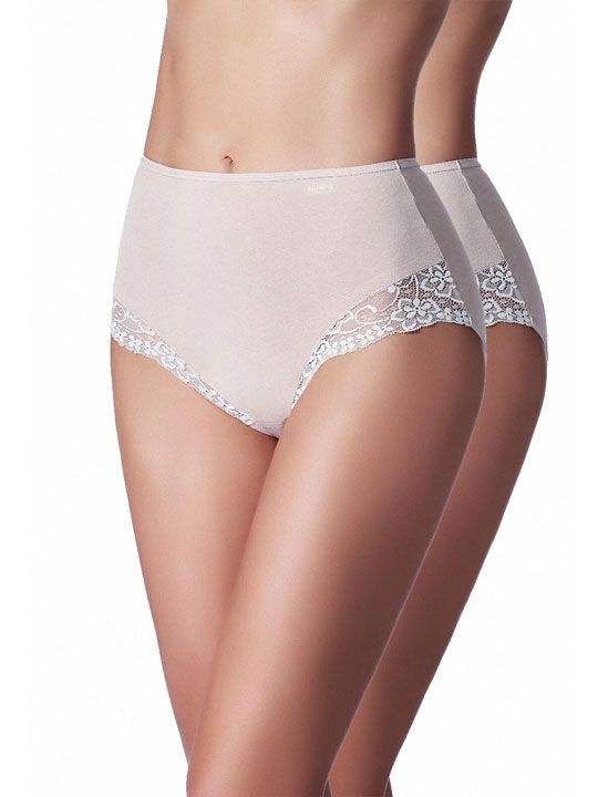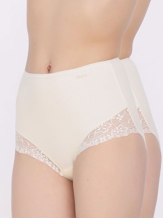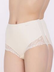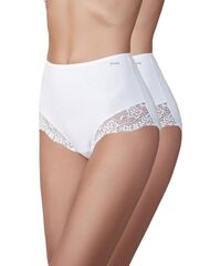 Трусики-слип с завышенной линией талии из высококачественного хлопка и тонким, мягким цветочным кружевом. Высота бочка 16 см. Ластовица выполнена из уникального хлопкового материала. Набор из 2 шт. одного цвета.