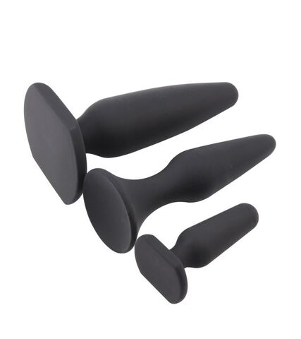 Набор из 3 анальных пробок Anal Traimer Kit. Очень приятный на ощупь материал. Длина большой пробки - 12,5 см., диаметр - 3,7 см.