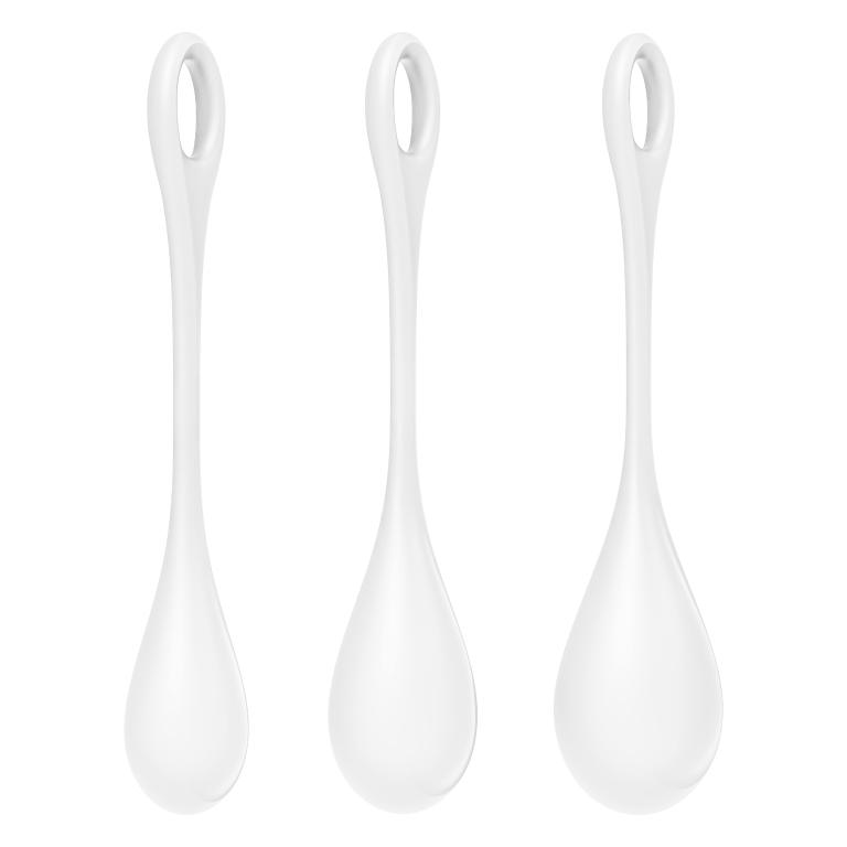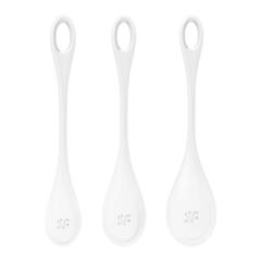 Yoni Power 1 – набор из трех одиночных шариков разного веса. Идеальные вагинальные тренажеры для начинающих, чтобы повысить тонус интимных мышц и снизить вероятность болезней мочеиспускательной системы. Удобная петелька позволяет легко извлечь тренажер при необходимости в любой момент. Для комфортности введения и получения максимально приятных ощущений рекомендуется использовать смазку на водной основе или гибрид. Общая длина - 12, 13 и 14 см.