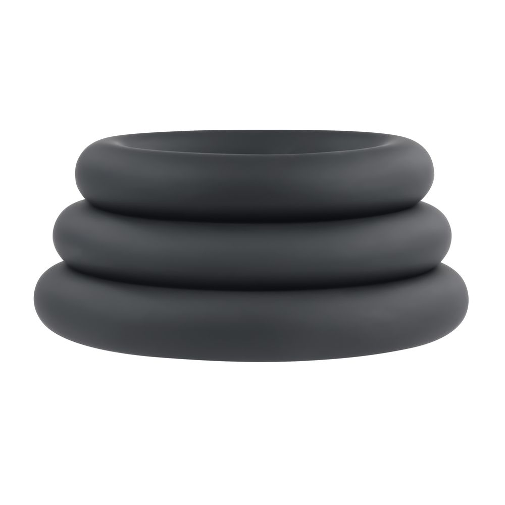 Набор 3 Ring Circus предлагает три мягких и эластичных силиконовых кольца для пениса, которые нежно ограничивают кровоток, создавая уникальный чувственный опыт. Каждое кольцо обеспечивает разную степень интенсивности, помогая усилить и продлить эрекцию. Внутренний диаметр колец - 3,38, 3,81 и 4,45 см.