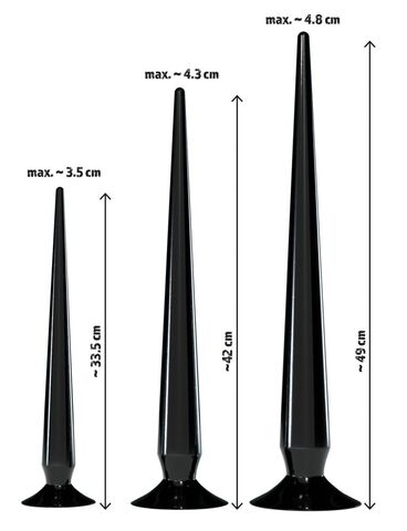 Набор из 3 длинных анальных пробок Super Long Flexible Butt Plug Set. Каждая имеет присоску в основании и отлично гнется, подстраиваясь под изгибы тела. Длина большой пробки - 49 см., диаметр - 4,8 см.