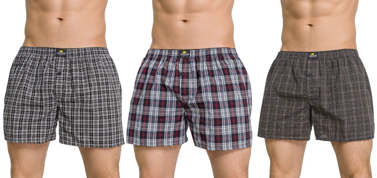Набор из 3 мужских трусов-шортов в клетку. Важно: расцветка - ассорти, цвет ткани и размер клеток может отличаться от представленных на фотографиях.