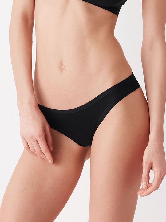 Трусики-бразилиана из мягкого эластичного хлопка тянущегося в две стороны. Линия талии и открытия ноги обработана окантовкой 1,3 см. Высота бочка 4,5 см. Низкая посадка талии. Набор из 3 шт. одного цвета.