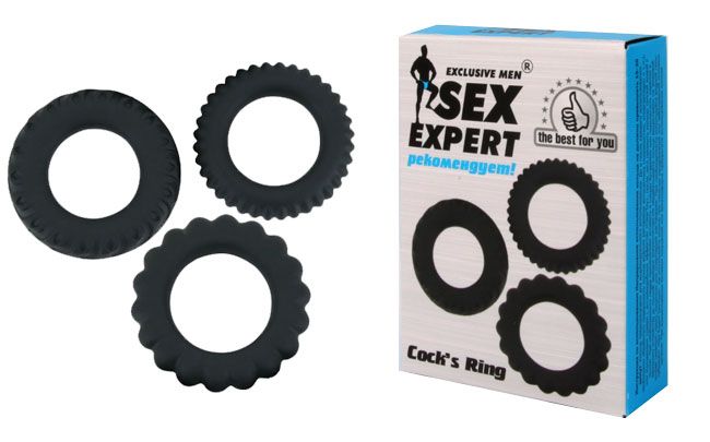 Набор из 3 рельефных эрекционных колец Sex Expert