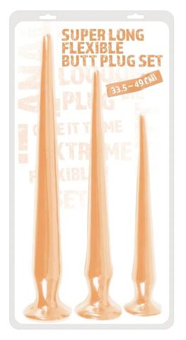 Набор из 3 длинных анальных пробок Super Long Flexible Butt Plug Set. Длина большой пробки - 49 см., рабочая - 46 см., диаметр - 1,5-4,8 см.