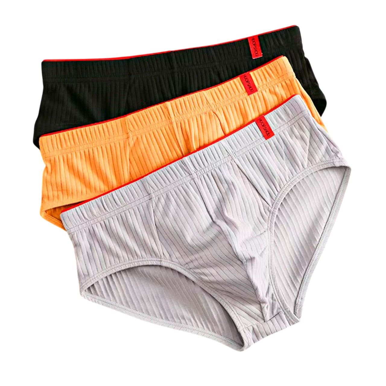 Набор из 3 трусов-брифов из ткани в рубчик: черных, желтых и светло-серых.