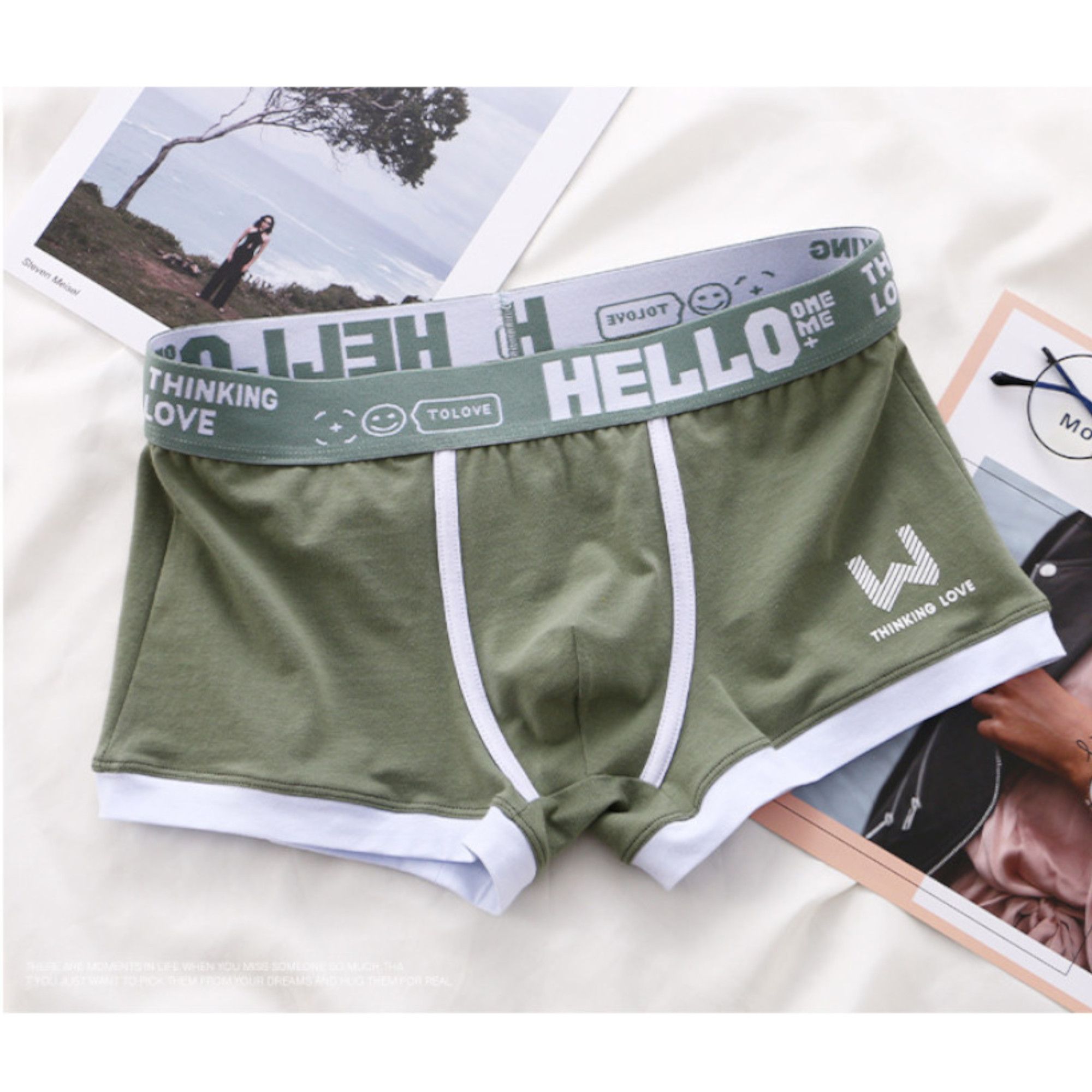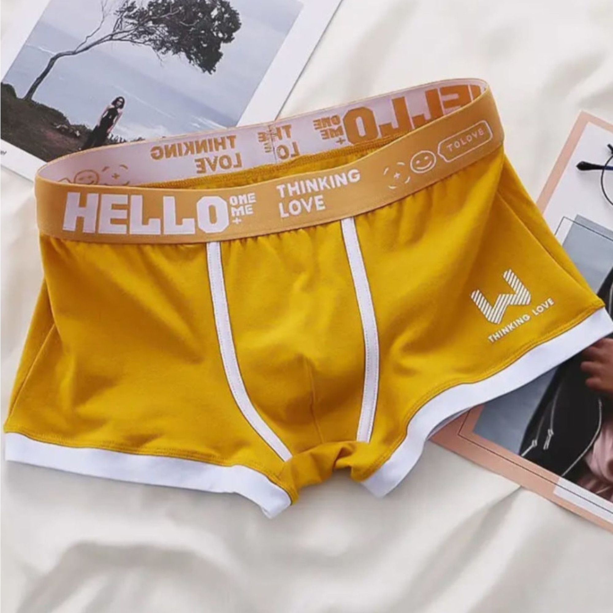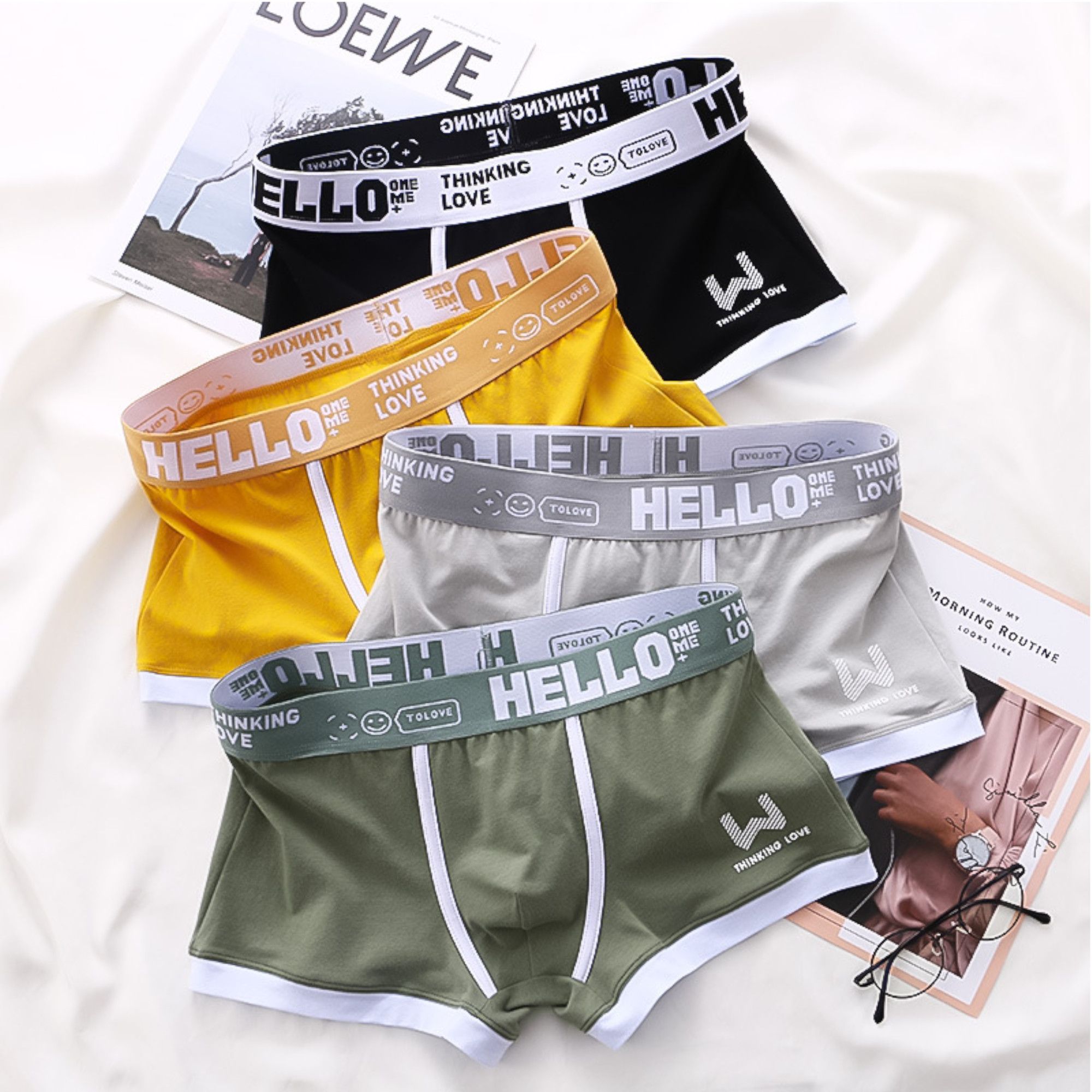Набор из 4 мужских трусов-боксеров: черные, желтые, серые, зеленые.