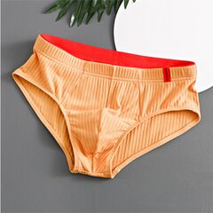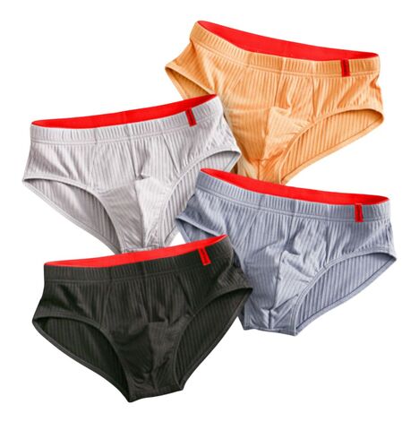 Набор из 4 мужских трусов-брифов из ткани в рубчик: черных, желто-оранжевых, светло-серых и серо-голубых.