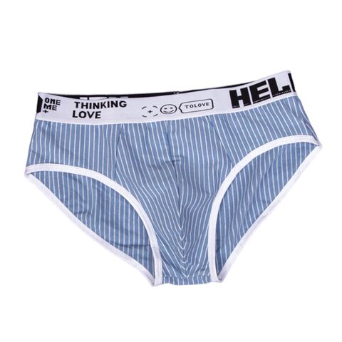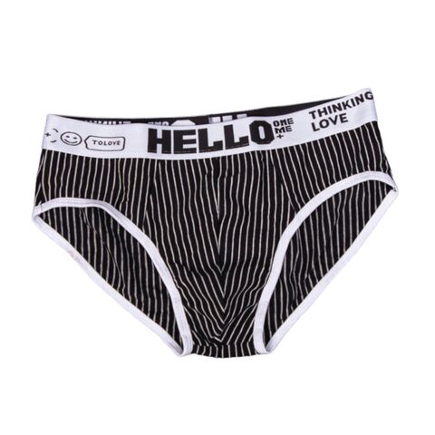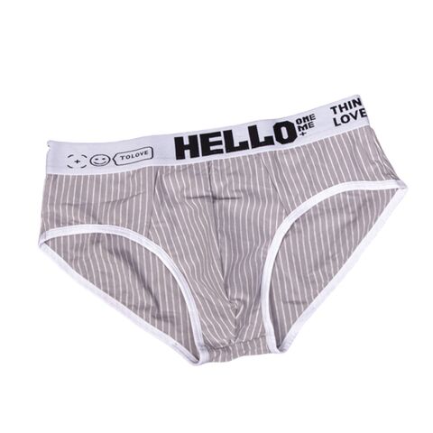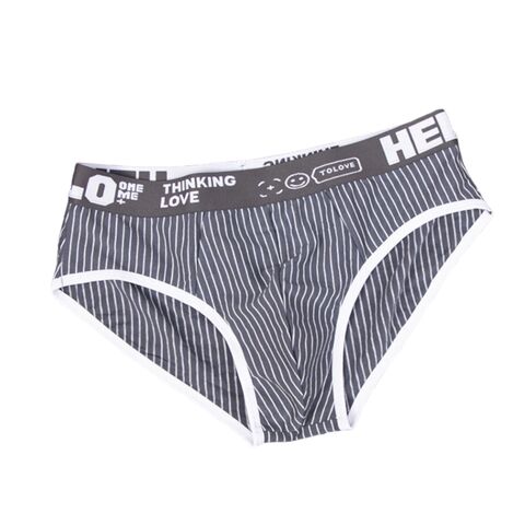 Набор из 4 мужских трусов-брифов в тонкую полоску: черных, темно-серых, светло-серых и голубых.