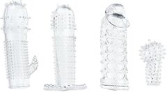 Набор и 4 насадок на пенис, чтобы разнообразить ваш сексуальный опыт. Длина насадок - от 5 до 10 см.