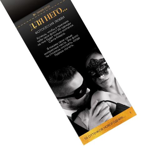 Порадуйте себя и вторую половинку оригинальным подарком с пикантным содержанием. Набор из пяти видов купонов поможет максимально интересно и возбуждающе провести Новый год и зимние каникулы!