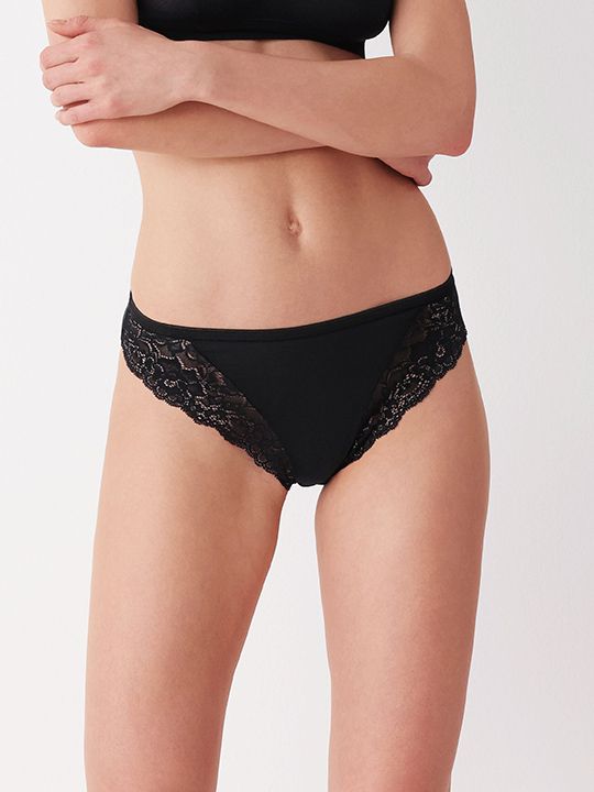 Трусики-слип из мягкого эластичного хлопка тянущегося в две стороны и кружева. Линия талии обработана плоской резинкой 1 см, линия открытия ноги спереди мягким кружевом, сзади плоской резинкой 1 см. Высота бочка 5см. Средняя посадка талии. Набор из 2 шт. одного цвета.